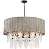 Minka Lavery 5297-66A Breakers Isle White Swirl Glass and PE Rattan Shade Pendant Ceiling Light, 9-Light 540 Total Watts, 23" H, Coal Black