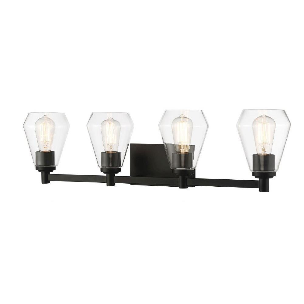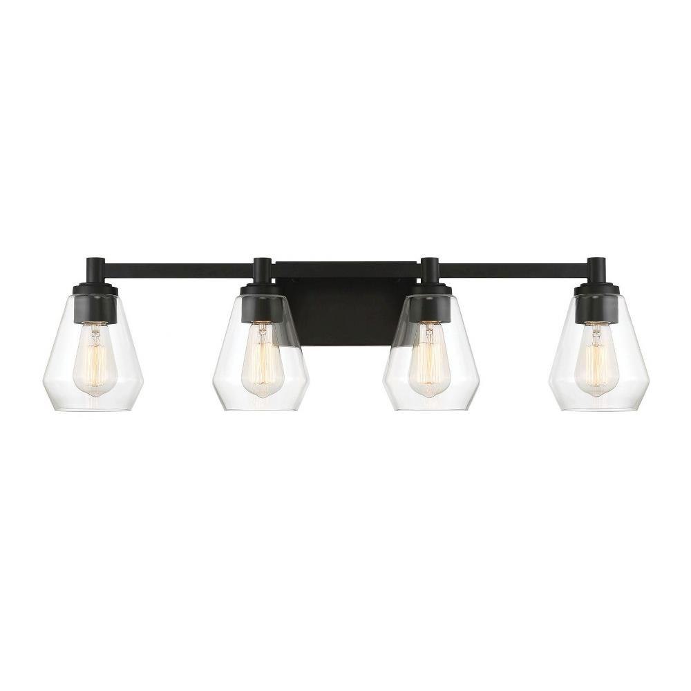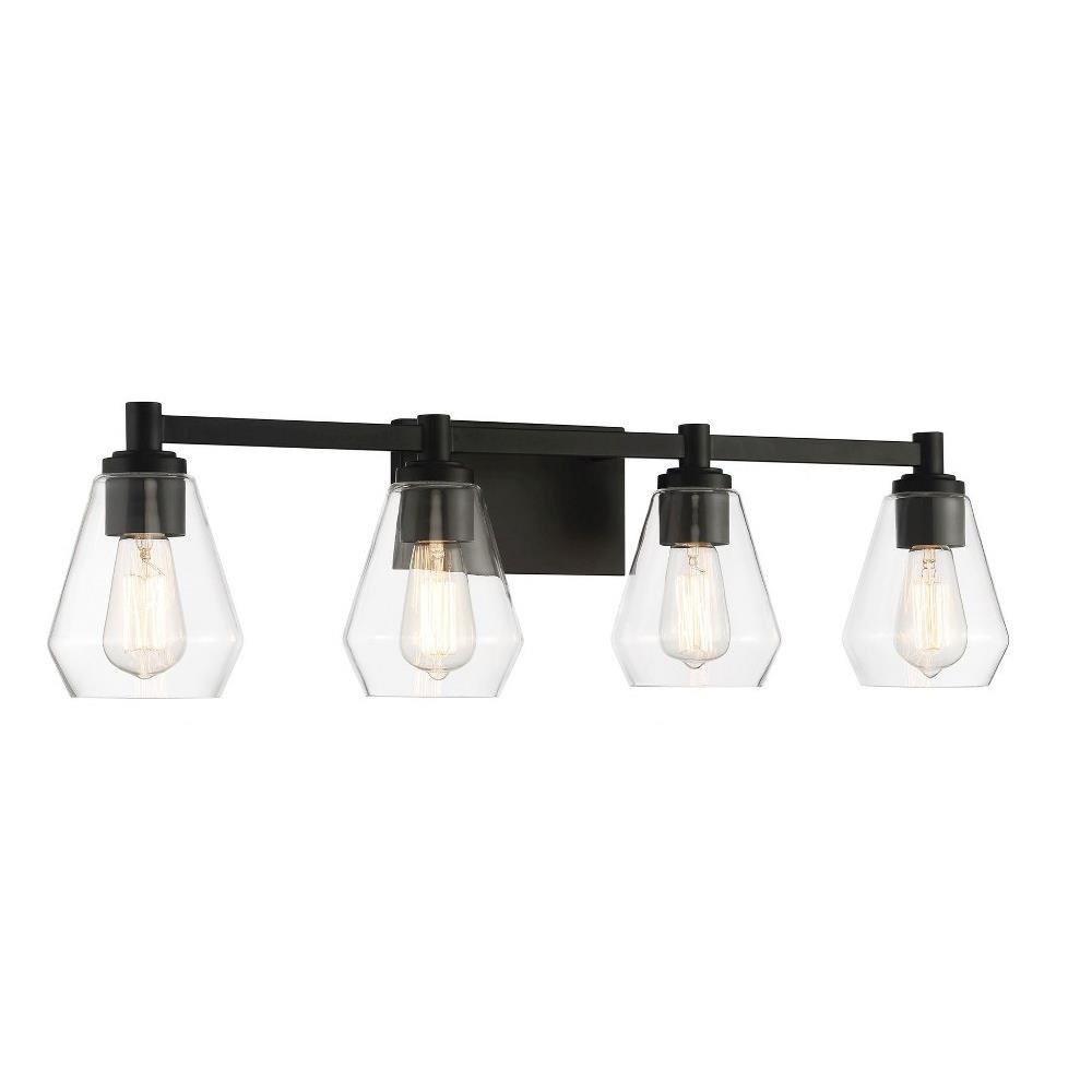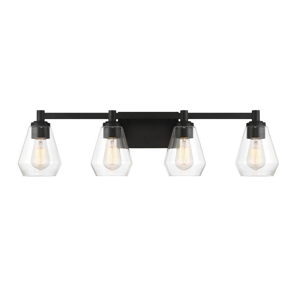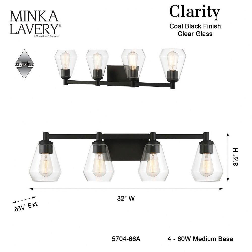 Introducing the Clarity - 4 Light Bath Vanity, a stunning addition to your bathroom decor. Standing at 8.5 inches tall and 32 inches wide, this elegant fixture from the Clarity collection features a sleek combination of glass and steel materials. Designed to accommodate four incandescent bulbs, it provides ample illumination while enhancing the ambiance of your space. Elevate your bathroom's style with this sophisticated and functional wall light.