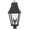 • The Great Outdoors 72786-66G Chateau Grande Outdoor Post Mount, 4-Light, 240 Total Watts, 12-in H x 27.5-in W, Coal Black with Gold Accents
