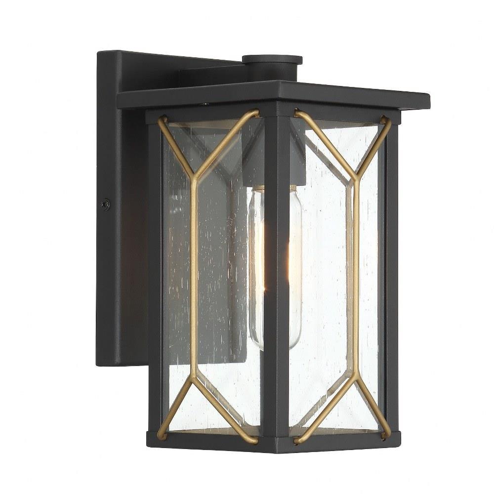 Introducing the Hillside Manor 1 Light Outdoor Wall Mount, a stunning addition to your outdoor space. Standing at 10 inches tall and 5.75 inches wide, this wall light showcases a captivating mid-century modern and transitional design. Crafted from durable aluminum and brass, it features an exposed bulb design that enhances its aesthetic appeal. Ideal for illuminating patios or entryways, this fixture combines style with functionality, making it a perfect choice for your home.