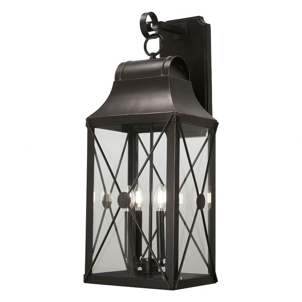 The Great Outdoors - De Luz 4 Light Outdoor Wall Mount combines traditional and transitional styles, making it a versatile addition to any exterior. Standing 31.38 inches tall and 12.5 inches wide, this elegant fixture features a durable aluminum and glass construction. The caged, candle-style design enhances its charm while accommodating four incandescent bulbs, providing ample illumination for outdoor spaces. Perfect for enhancing your home's curb appeal, this wall light seamlessly blends functionality with aesthetic appeal.