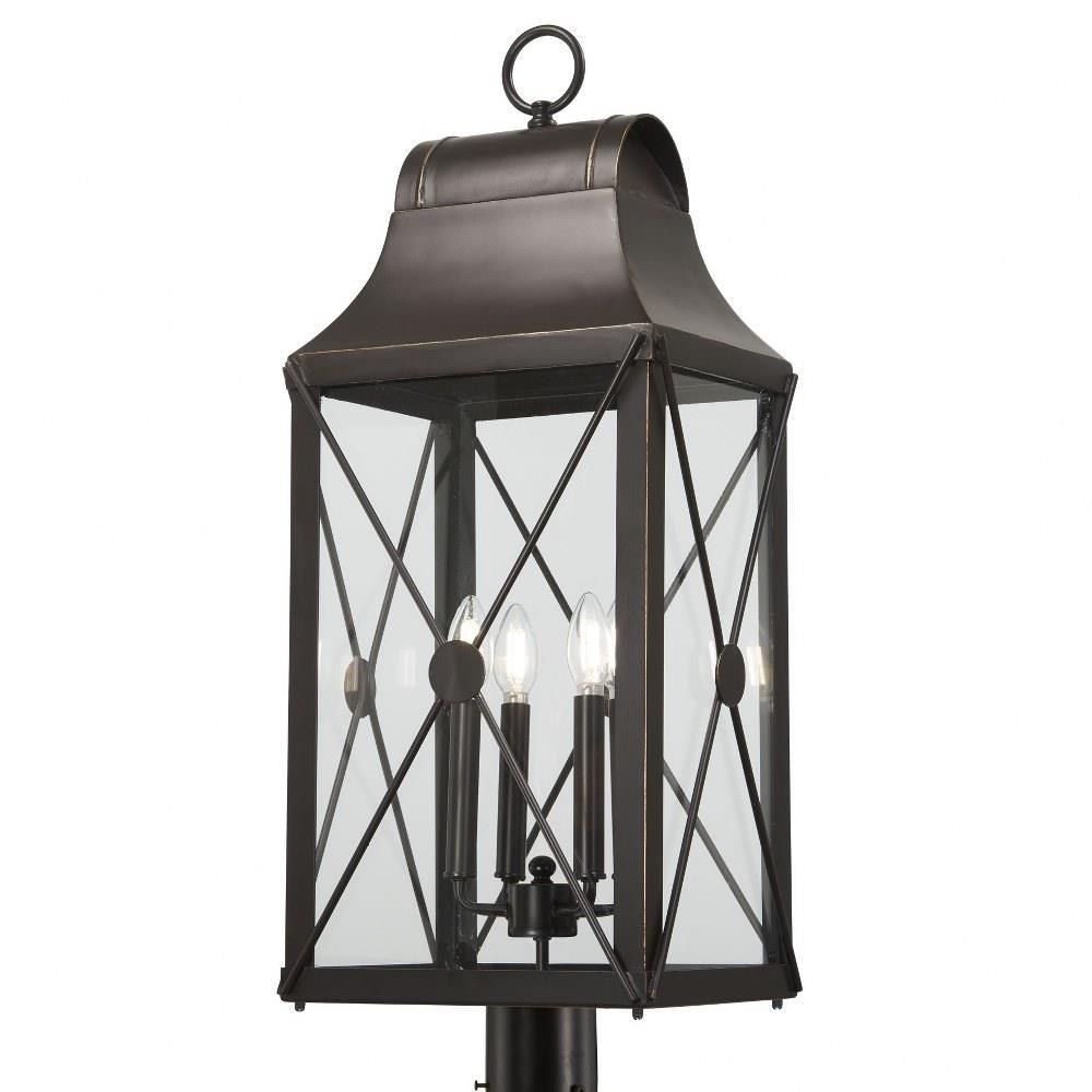 Illuminate your outdoor spaces with the Great Outdoors - De Luz 4 Light Outdoor Post Mount. Standing 32.25 inches tall and 12.5 inches wide, this elegant fixture combines traditional and transitional styles. Crafted from durable aluminum and glass, it features a charming caged design with candle-style lamps, accommodating four incandescent bulbs. Perfect for enhancing pathways or gardens, this post light adds both functionality and aesthetic appeal to any outdoor setting.
