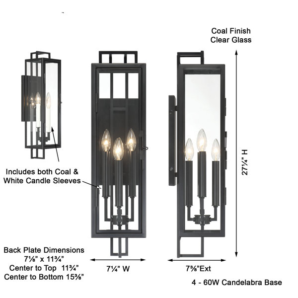 The great outdoors even outdoor wall mount is a perfect blend of style and functionality. Designed to withstand the rigors of outdoor use, this wall-mounted light fixture is crafted from durable steel, aluminum, and glass materials. Its elegant design, featuring a coal finish and clear glass shade, adds a touch of sophistication to any exterior space. Whether you're looking to illuminate your porch, sconce, or other outdoor areas, this light fixture delivers a warm, inviting glow that enhances the ambiance of your home. It's perfectly proportioned to make a statement without overwhelming your space. The light is easy to install and maintain, making it a practical choice for homeowners. It can accommodate two C10.5 bulbs, ensuring ample lighting for your outdoor spaces. Create a welcoming atmosphere for your family and guests with the great outdoors even light outdoor wall mount.