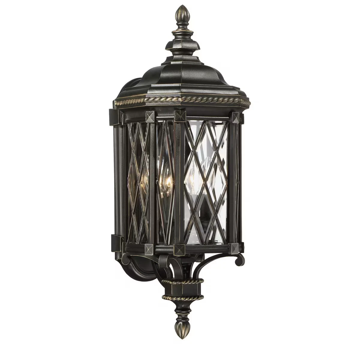The Great Outdoors 9321-585 Bexley Manor 4-Light Outdoor Wall Lantern in Black