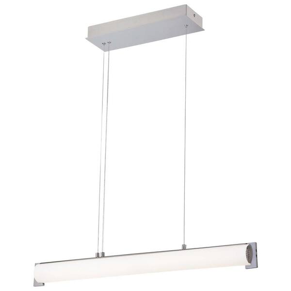 Tube 100-Watt Brushed Nickel Integrated LED Pendant with Etched White Glass