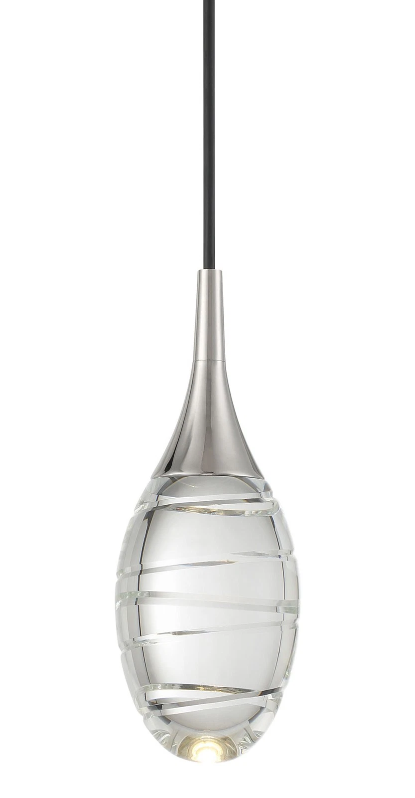 Kovacs P5592-L Hail 4" Wide LED Mini Pendant. Kovacs P5555-L Conc 24"W LED Suspension Pendant - White. Integrated 8 watt LED lighting. Roseto ZP41015 Carrillo 18"W Pendant - Matte White / Brushed Nickel.