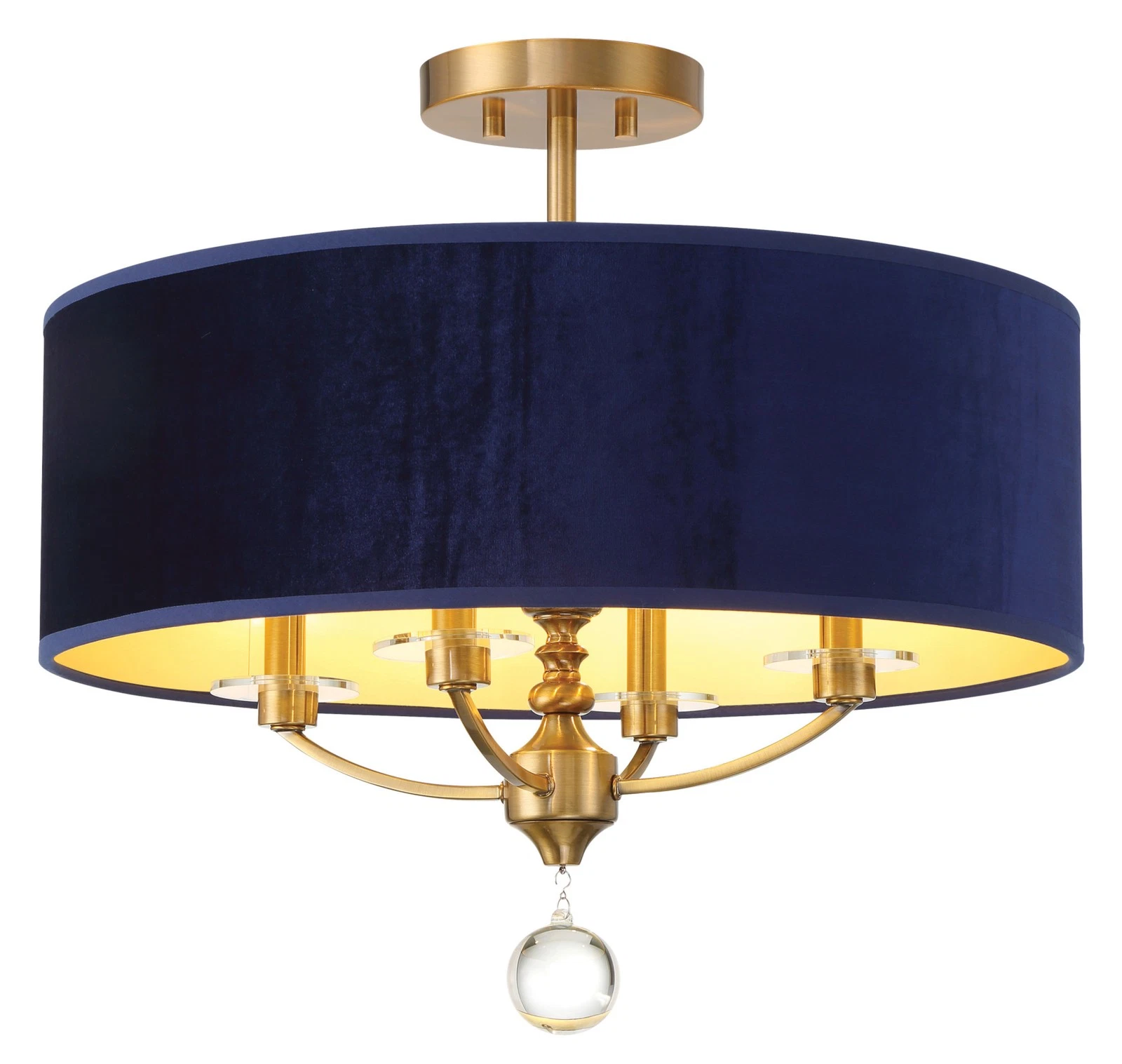 Minka Lavery 3484 Van Noord 4 Light 21" Wide Semi-Flush Ceiling Fixture with Blue Velvet Shade. Nuvo Lighting 62/1776 Blink Pro Plus 12"W LED Flush Mount Ceiling - White. Golden Lighting 3602-14 Duncan 14"W Flush Mount Ceiling Fixture - White.