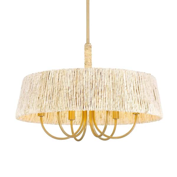Hellia 60-Watt 6-Light Legacy Brass Drum Pendant Light with a Natural Abaca Rope Shade, No Bulbs Included