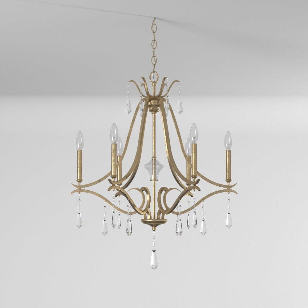 Introducing the Laurel Estate Chandelier, a stunning addition to any traditional or transitional space. Standing 31.75 inches tall and 26.75 inches wide, this exquisite piece features six incandescent bulbs, illuminating your home with elegance. Crafted from a harmonious blend of crystal, glass, and steel, its candle-style design beautifully showcases the luxurious brio gold finish. Elevate your decor with the timeless charm of the Laurel Estate collection, where sophistication meets functionality.