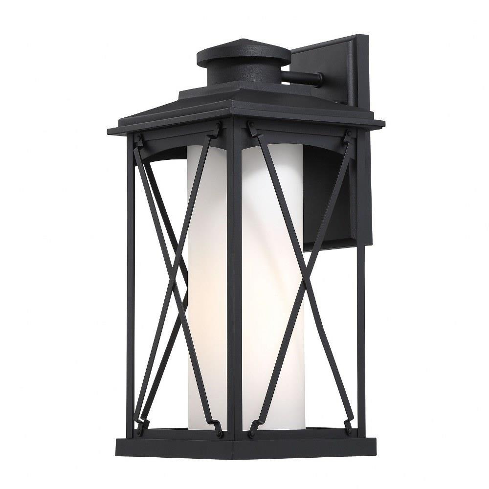The sturdy cross braces create a bold, yet artistic pattern while the etched opal glass creates a warm welcoming glow.