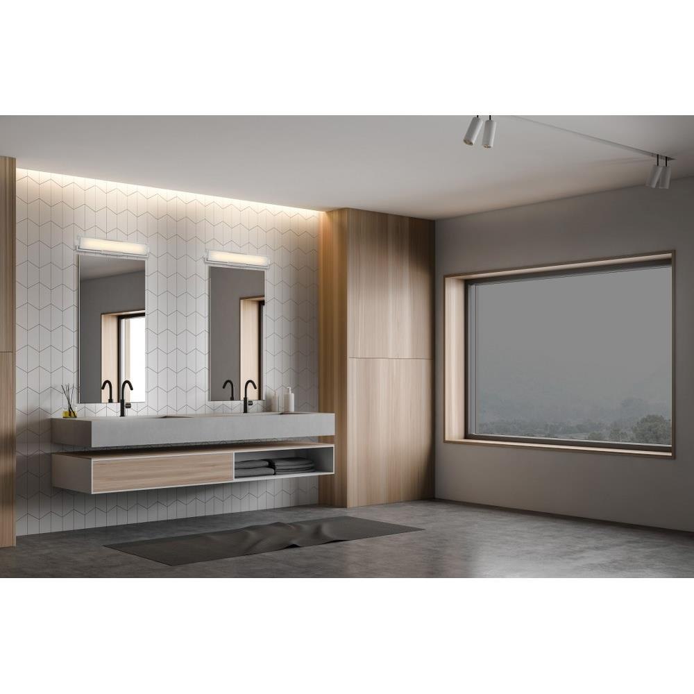 Introducing the Opening Act - 22W 1 LED Bath Vanity, a stunning addition to your contemporary or transitional space. Crafted from durable aluminum, glass, and steel, this wall light features a hidden bulb design that elegantly conceals the light source while providing ample illumination. Measuring 4.75 inches tall and 24 inches wide, it perfectly balances style and functionality, making it an ideal choice for any bathroom setting. Enjoy the perfect blend of modern aesthetics and practical design.