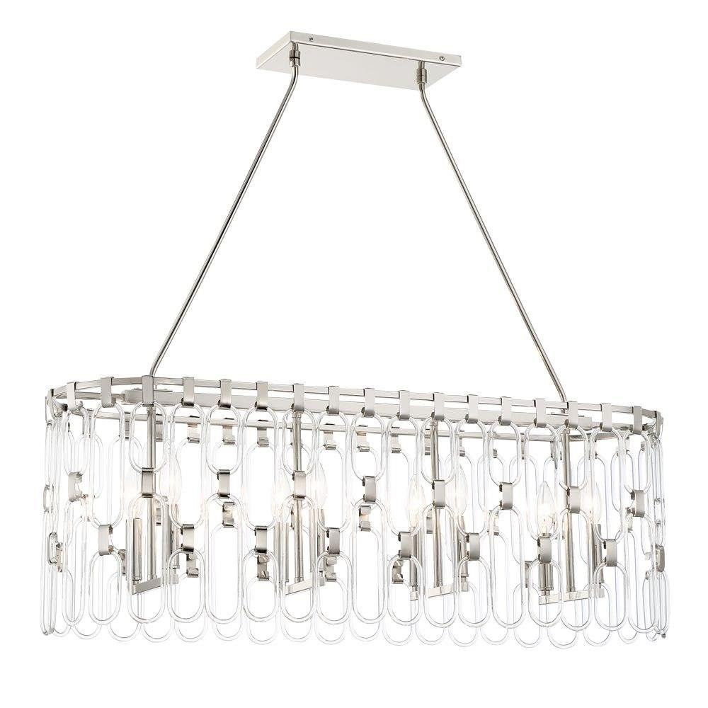 Introducing the Charming 8 Light Island pendant, a stunning addition to your space. Measuring 32 inches tall and 36.13 inches wide, this elegant fixture features a harmonious blend of glass and steel, ensuring durability and style. With eight incandescent bulbs, it provides ample illumination, creating a warm and inviting atmosphere. The Charming collection embodies sophistication, making it a perfect centerpiece for dining areas or kitchens, enhancing both functionality and aesthetic appeal.