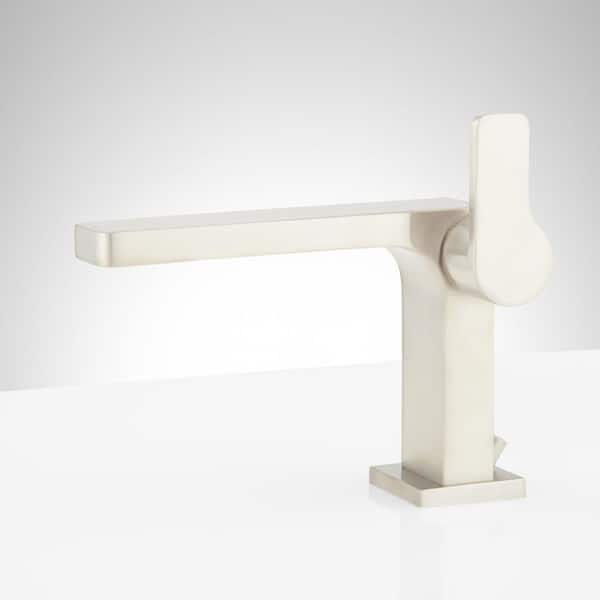 Hibiscus Single Handle Mid Arc Single Hole Bathroom Faucet with Deckplate Included in Brushed Nickel