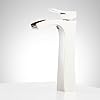 The Vilamonte Waterfall Faucet beautifully cascades water into your vessel sink below. Made of brass and covered with a corrosion-resistant finish, this product will hold up to the demands of everyday use. A matching pop-up sink drain is included to finish the look. Signature Hardware 948607 Features: Covered under Signature Hardware's 25 year limited Faucet body constructed of brass with metal lever handle Single hole vessel installation - designed to fit over an above counter vessel sink Single lever handle controls the flow and temperature of water Faucet utilizes ceramic disc valves for the most reliable drip-free performance on the market Finished matched pop-up drain assembly included Connects to water supply using a 1/2"Iron Pipe Sizeconnection Conforms to the standards set out by the Americans with Disabilities Act (ADA) WaterSense labeled; conserves water while continuing to deliver exceptional performance WARNING - California Prop 65: This product may contain chemicals known to the State of California to cause cancer, birth defects or other reproductive harm; wash hands after handling. For use with sinks that contain overflow Signature Hardware 948607 Specifications: Height: 10-1/2" (deck to top of faucet) Spout Height: 8" (deck to spout outlet) Spout Reach: 4-3/4" (faucet base to spout outlet) Flow Rate: 1.2 gallons-per-minute Maximum Deck Thickness: 2-1/4" Holes Required: 1