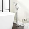 The Beasley freestanding tub faucet combines a traditional look with modern functionality. This gracefully designed fixture boasts an elegantly shaped spout and easy-to-use controls. The multifunction hand shower allows you to switch between a full spray and a powerful massage or use both simultaneously. Made of brass and covered with a corrosion-resistant finish, the Beasley will bring lasting beauty to your bathroom. Signature Hardware 948654-Lv Features: Covered under Signature Hardware's 25 year limited Solid brass construction Includes hand shower - Multi Function hand shower handy for rinsing down the tub or just rinsing off after a bath Single hole floor mounted installation Rough in valve needed for installation sold separately Three function hand shower (full spray, massage, spray + massage) Integral diverter to hand shower Hand shower includes factory installed backflow prevention check valve Note: Underfloor access is required for proper installation (Installation on an existing concrete slab will require cutting and concrete removal) Signature Hardware 948654-Lv Specifications: Height: 41-3/4" (from bottom to top of faucet) Spout Reach: 37-7/8" (deck to spout outlet) Spout Reach: 8-3/4" (center of faucet body to center of spout outlet horizontally) Flow Rate: 10.8 gallons-per-minute Hand Shower Flow Rate: 1.8 gallons-per-minute Hose Length: 58" Faucet Holes: 1 (minimum number of holes required for installation)