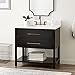 Refresh the look of your bathroom with the 36" Robertson Console Vanity. The simple design of this product includes a lower shelf and U-shaped drawer. Crafted for a rectangular undermount sink, the Robertson adds functional style to your space. Signature Hardware 934862 Included Components: Mahogany vanity cabinet with 1 drawer Quartz vanity top with one sink Mirror is not included and must be purchased separately Faucet is not included and must be purchased separately Covered under Signature Hardware's 25 year limited Cabinet Features: Constructed from mahogany Free standing installation - vanity is seated on the floor with wall anchors Single full extension drawer allows for organized storage Vanity cabinet includes matching decorative hardware Vanity Top Features: Arctic White and Feathered White constructed from quartz Vanity top includes single basin sink Three pre-drilled faucet holes Rear drain location increases available space under the sink Faucet hole drilled to fit a standard 1-1/2" sink See installation Instructions for directions to attach the vanity top and sink Each stone top is carved from a single piece of stone and will feature natural variations Includes a matching backsplash and a white porcelain sink Cabinet Specifications: Number of Drawers: 1 Vanity Top Specifications: Vanity Top Width: 36" (left edge to right edge) Vanity Top Depth: 21" (front edge to back edge) Backsplash Height: 4" Number of Basins: 1 Number of Faucet Holes: 3 Faucet Centers: 8" Drain Outlet Connection: 1-1/2"