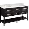 Product Summary: Signature Hardware 458438 Robertson 60" Free Standing Double Vanity Cabinet Set with Mahogany Cabinet, Vanity Top and Rectangular Undermount Sinks - Single Faucet Hole - Black/Carrara