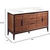 If your modern master bath lacks style and storage, look no further than the 60" Aliso Double Vanity for Rectangular Undermount Sinks. Styled to transform the look of your space, this cabinet features a lovely finish, linear details, and sleek hardware. Its durable build consists of a solid teak frame and veneers for lasting durability. Two pairs of doors and three center drawers are all equipped with soft-close glides and hinges, promising smooth, quiet operation. Signature Hardware 950752 Included Components: Teak vanity cabinet with 4 doors and 3 drawers Quartz vanity top with two sinks Mirrors are not included and must be purchased separately Faucets are not included and must be purchased separately Covered under Signature Hardware's 25 year limited Cabinet Features: Constructed from teak Free standing installation - vanity is seated on the floor with wall anchors 4 door design provides easy access to storage space 3 full extension drawers allow for organized storage Vanity cabinet includes matching decorative hardware Vanity Top Features: Arctic White and Feathered White constructed from quartz Vanity top includes 2 basin sinks Rear drain location increases available space under the sink Faucet hole drilled to fit a standard 1-1/2" sink Each stone top is carved from a single piece of stone and will feature natural variations Includes a matching backsplash and a white porcelain sink See Installation Instructions for directions to attach the vanity top and sink Cabinet Specifications: Number of Doors: 4 Number of Drawers: 3 Vanity Top Specifications: Vanity Top Width: 60" (left edge to right edge) Vanity Top Depth: 21" (front edge to back edge) Backsplash Height: 4" Number of Basins: 2 Number of Faucet Holes: 6 per basin (12 Total) Faucet Centers: 8" Drain Outlet Connection: 1-1/2"
