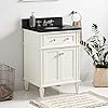Signature Hardware 953348-24-Um-8 Included Components: Mahogany vanity cabinet with 2 doors, 1 drawer, and 1 shelf Granite, marble, or quartz vanity top with 1 undermount vitreous china sinks Mirror is not included and must be purchased separately Faucet is not included and must be purchased separately Covered under Signature Hardware's 25 year limited Cabinet Features: Constructed of mahogany Free standing installation vanity is seated on the floor with wall anchors 2 door design provides easy access to storage space 1 full extension drawer with soft-close slides allows for organized storage Soft close drawer slides operate on smooth ball-bearings and prevent drawers from slamming shut Vanity cabinet includes matching decorative hardware Vanity Top Features: Vanity top options constructed from granite, marble, or quartz Vanity top includes 1 undermount basin sink constructed of vitreous china Three pre-drilled faucet holes Rear drain location increase available space under the sink Each stone top is carved from a single piece of stone and will feature natural variations See Installation Instructions for directions to attach the vanity top and sink All dimensions are +/- 1/2" Granite is A-grade and marble is sourced from Italy Cabinet Specifications: Cabinet Width: 24-1/8" (from left to right) Cabinet Height: 34-1/4" (from top to bottom) Cabinet Depth: 21" (from front to back) Number of Doors: 2 Number of Drawers: 1 Number of Shelves: 1 Vanity Top Specifications: Vanity Top Width: 25" (left edge to right edge) Vanity Top Depth: 22" (front edge to back edge) Backsplash Height: 4" Number of Basins: 1 Sink Measurements: 18-5/8" L X 15" W X 7-3/4" H Sink Basin Measurements: 16" L X 12-1/2" W X 6" H Number of Faucet Holes: 3 Faucet Centers: 8" (distance between the installation holes for the faucet handles)