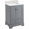 Product Summary: Signature Hardware 480557 Quen 24" Free Standing Single Vanity Set with Wood Cabinet, Vanity Top and Rectangular Undermount Vitreous China Sink - 8" Faucet Holes - Gray/Carrara Marble