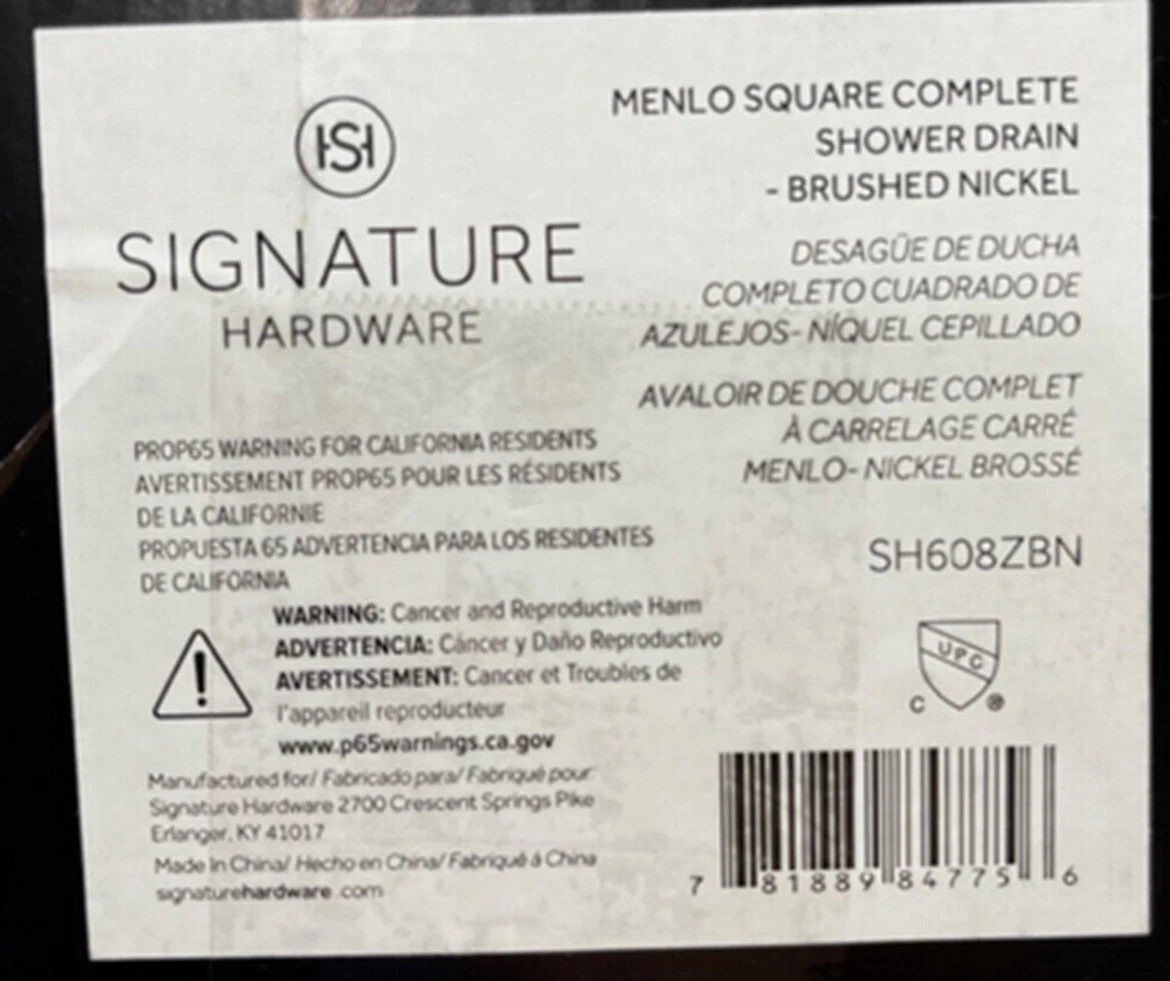 Signature Hardware SH608ZBN Menlo Square Shower Drain, Brushed Nickel (481862)