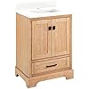 Product Summary: Signature Hardware 483351 Quen 24" Free Standing Single Basin Vanity Set with Cabinet, Vanity Top, and Undermount Sink - 1 Faucet Hole - Driftwood Brown/Feathered White Quartz