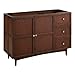 Teeming with stylish sophistication, the 48" Delavan Vanity is perfect for any mid-sized bathroom update. A rich cold brew finish highlights this durable mahogany build, adorned with satin brass hardware to bring together an ultra-inviting look. The Delavan's design features a recessed paneling effect and peg legs for eye-catching, mid-century modern appeal. A spacious cabinet opens up to three drawers and two doors, complete with an adjustable shelf for plenty of storage and organization options. Signature Hardware 487970 Features: Covered under Signature Hardware's 25 year limited Engineered wood panels with mahogany overlay Free standing installation vanity is seated on the floor with wall anchors 2 door design provides easy access to storage spaces 3 full extension drawers with soft-close hinges allow for organized storage space Equipped with 1 shelf allowing for even more storage capacity Vanity cabinet includes matching decorative hardware Vanity will ship fully assembled Solid wood cabinet See installation instructions for directions to attach the vanity top and sink All dimensions are +/- 1/2" Signature Hardware 487970 Specifications: Width: 48" (from left to right) Height: 34-1/4" (from top to bottom) Depth: 21-1/8" (from front to back) Number of Doors: 2 Number of Drawers: 3 Number of Shelves: 1