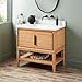 The 36" Aliso Console Vanity brings refined style and function to any bath. Featuring a console silhouette, the Aliso's versatile storage and open, airy feel is met with a maximized interior—complete with power outlets to streamline use of your plug-in essentials. Crafted from durable teak with a natural finish, achieve inviting warmth and lasting strength in one. Minimalist and panel doors add a sleek touch while soft-close hinges ensure a smooth, luxe experience. Signature Hardware 955226-36-Rumb Included Components: Teak vanity cabinet with 2 doors Marble and quartz vanity top with 1 porcelain sink Mirror is not included and must be purchased separately Faucet is not included and must be purchased separately Covered under Signature Hardware's 25 years limited Cabinet Features: Constructed from teak Free standing installation - vanity is seated on the floor with wall anchors 2 door design provides easy access to storage space Vanity cabinet includes matching decorative hardware A built-in power box features two outlets and two USB ports See Installation Instructions for directions to attach the vanity top and sink Vanity Top Features: Carrara Marble constructed from marble or Arctic White and Feathered White constructed from quartz Vanity top includes single basin sink constructed of porcelain Rear drain location increases available space under the sink Faucet hole drilled to fit a standard 1-1/2" sink Each stone top is carved from a single piece of stone and will feature natural variations Cabinet Specifications: Number of Doors: 2 Number of Shelves: 0 Vanity Top Specifications: Vanity Top Width: 36" (left edge to right edge) Vanity Top Depth: 21" (front edge to back edge) Backsplash Height: 4" Number of Basins: 1 Number of Faucet Holes: 0 All dimensions are +/- 1/2"