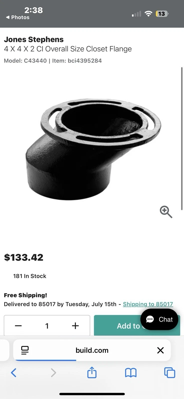 Jones Stephens C43440 4 X 4 X 2 CI Overall Size Closet Flange