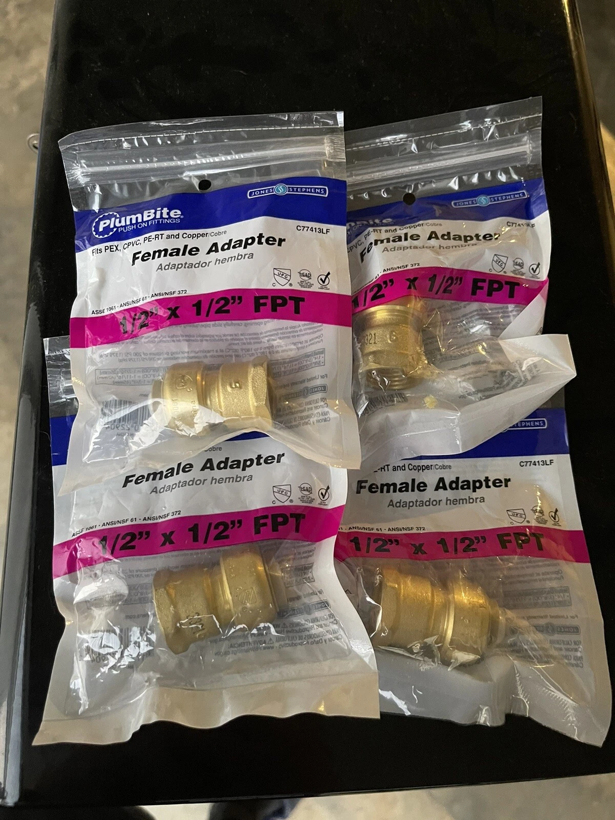 Jones Stephens C77413LF 1/2" x 1/2" FPT PlumBite Push - Brass “Female Adapter”