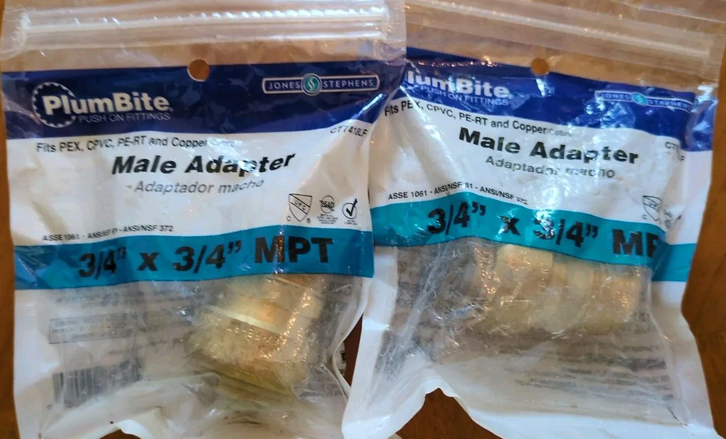 Set Of Two PlumBite 3/4" x 3/4" MPT Push On Male Adapters