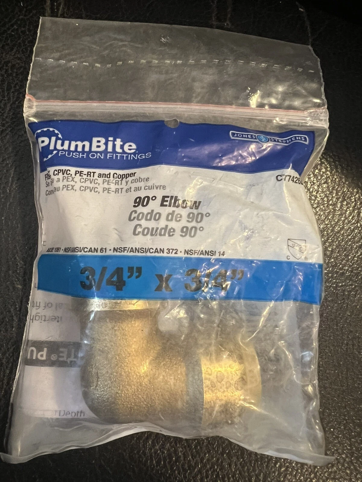 Jones Stephens C77426LF 3/4" PlumBite Push On 90 Degrees Elbow - Brass