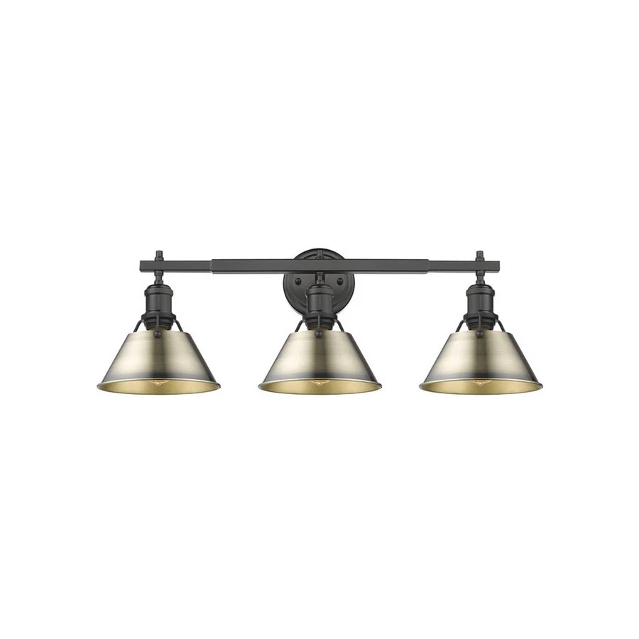Golden Orwell 3-Light Vanity Light, Matte Black/Aged Brass - 3306-BA3BLK-AB