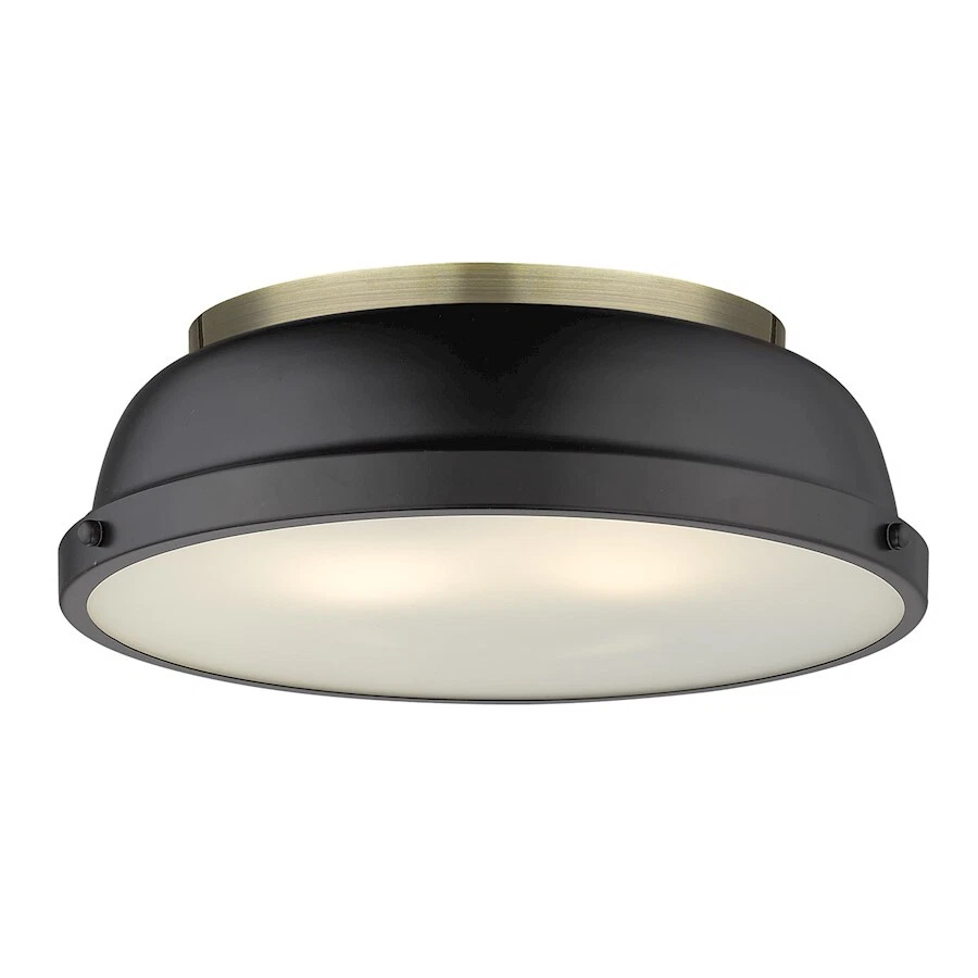 Golden Lighting Duncan 14" Flush Mount, Aged Brass/Black Shade - 3602-14AB-BLK