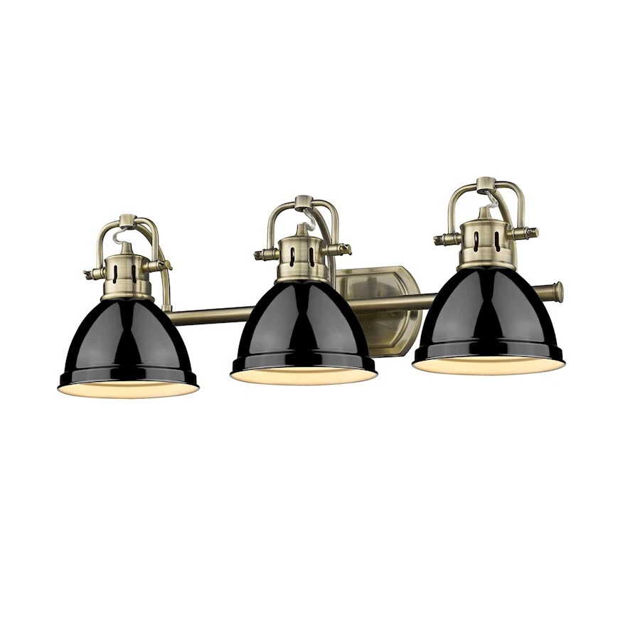 Golden Duncan 3 Light Bath Vanity, Aged Brass, Black Shades - 3602-BA3AB-BK