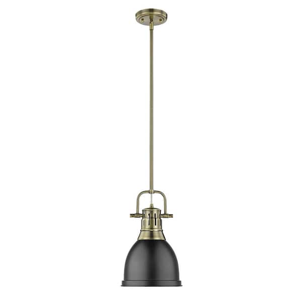 Duncan 100-Watt 1-Light Aged Brass Pendant Light with Black Shade and No Bulbs Included