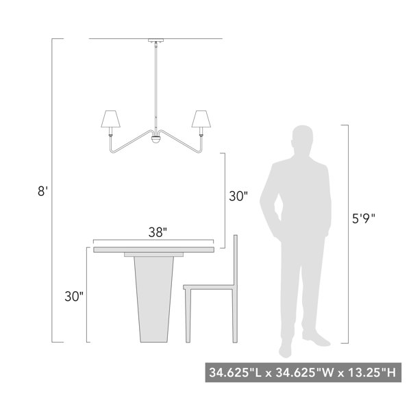 With dimensions of 29.75"W x 9.38"H x 29.75"D and a height adjustable from 9.375" to 49.875", this chandelier is perfect for customizing your space. The fixture requires six E12 Candelabra base bulbs (not included) for optimal illumination. It's designated for dry locations, making it a safe and stylish choice for indoor use.