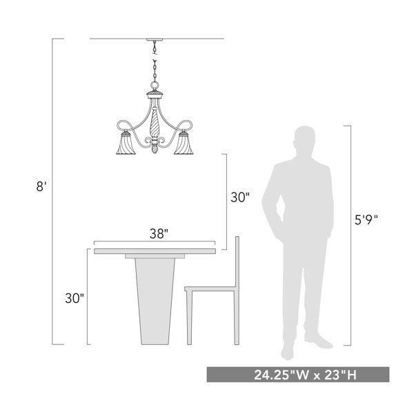 The Wry Lighting Torbellino 5-light Chandelier in Cordoban Bronze features a classic design with ornate details and excellent light diffusion. Its glass shade enhances the light play, making it perfect for dining rooms and entryways. With a dry location rating, adjustable height (24.5"-96.5"), and sloped-ceiling compatibility, it’s a versatile choice for refined spaces. Requires 5 E26 Medium base bulbs (not included).