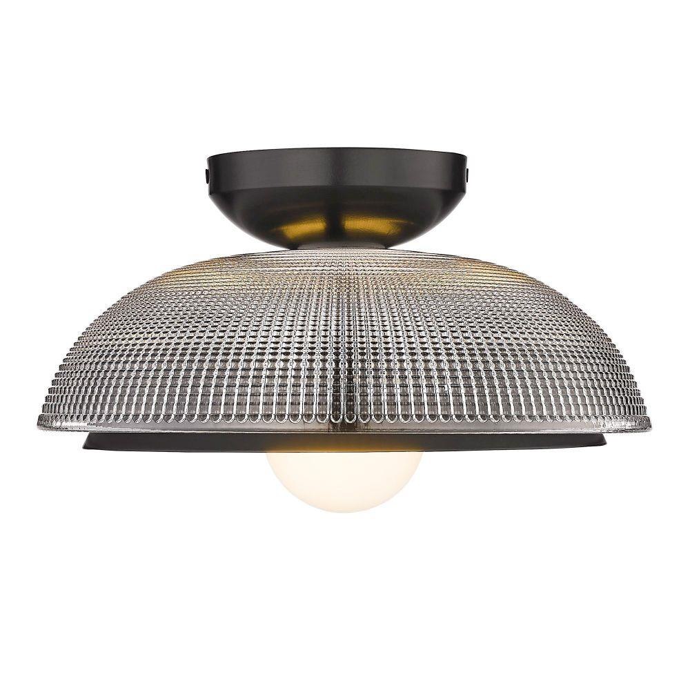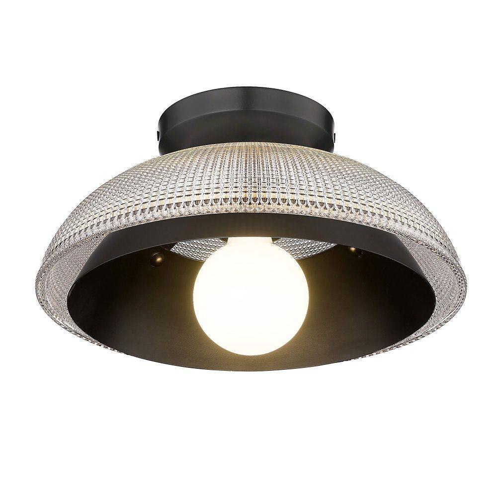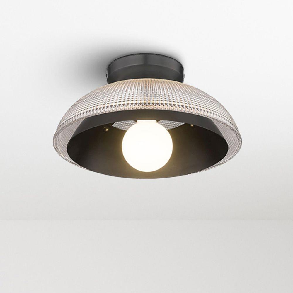 Evocative of the Art Deco style of the glamorous roaring twenties, this flirty, vintage-inspired design has mid-century modern elements. The textured Retro Prism Glass skirts the smooth shade for a layered look that is pure feminine sophistication. Complete the glam look of this damp-rated fixture with an oversized globe bulb.