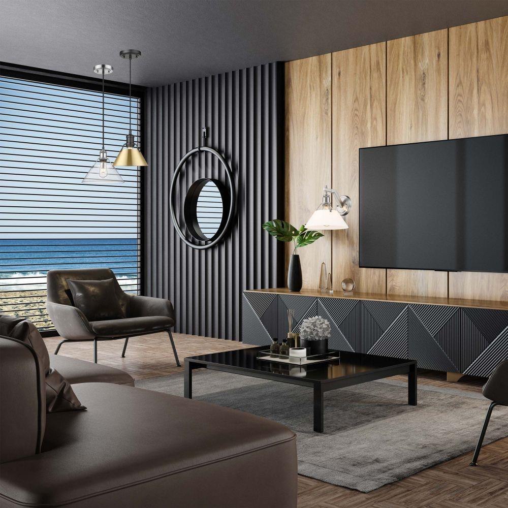The beauty and character of the Orwell Collection are in the refined details. This transitional series is industrial-inspired and works well in a variety of settings. Stylish and functional by design, the partial shades allow light and heat to escape, creating ambient and task lighting. An extensive assortment of finish and shade color options heightens the appeal.
