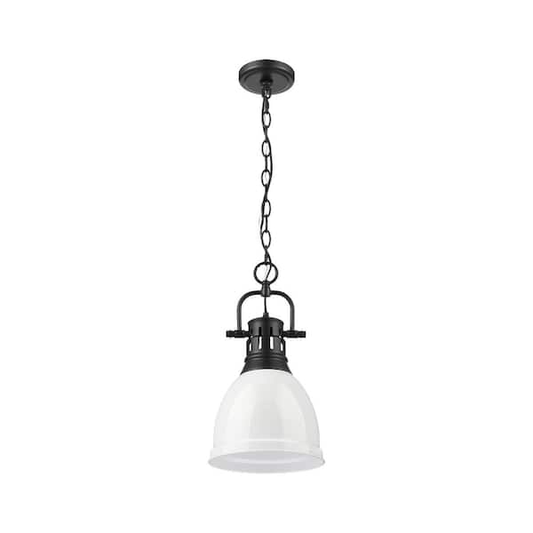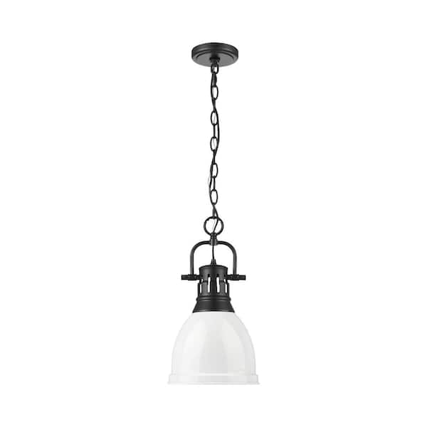 Duncan 100-Watt 1-Light Matte Black Pendant Light with White Shade and No Bulbs Included
