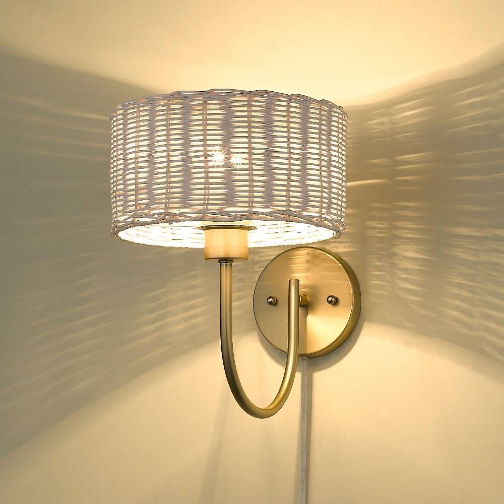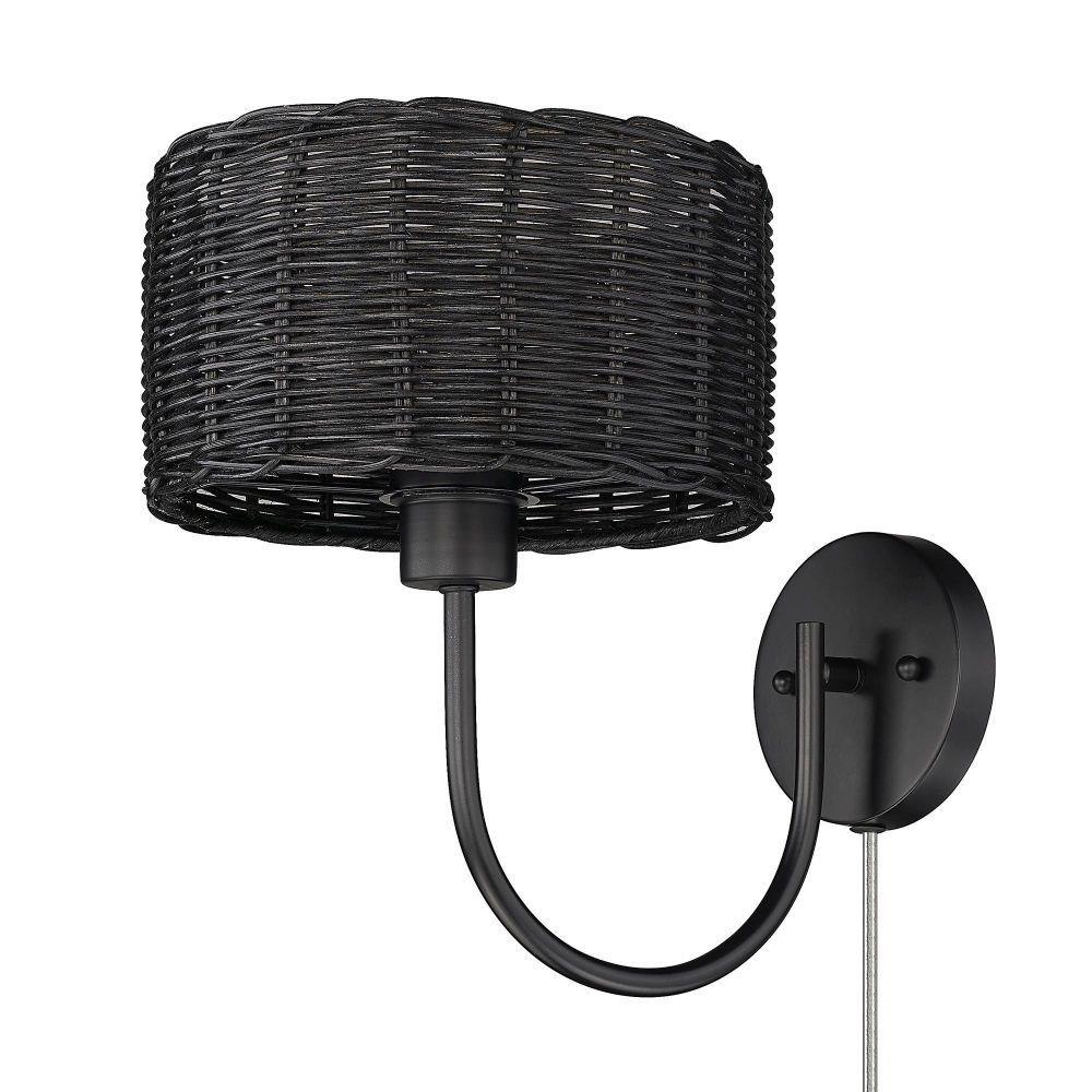 Casual elegance is re-defined in the transitional Erma Collection. This Bohemian-chic series will give your home new life. Offered in multiple silhouettes and finishes, including some two-tier configurations, these textured, airy fixtures are stunning. Carefully crafted of woven wicker over a steel frame, the lights are durable. Create a warm ambiance in any indoor space with these peek-a-boo woven shades. Choose between a casual monochromatic look of Matte Black and Black Wicker or a more upscale look of Brushed Champagne Bronze and White Wicker. Bright light shines from a medium-based socket.