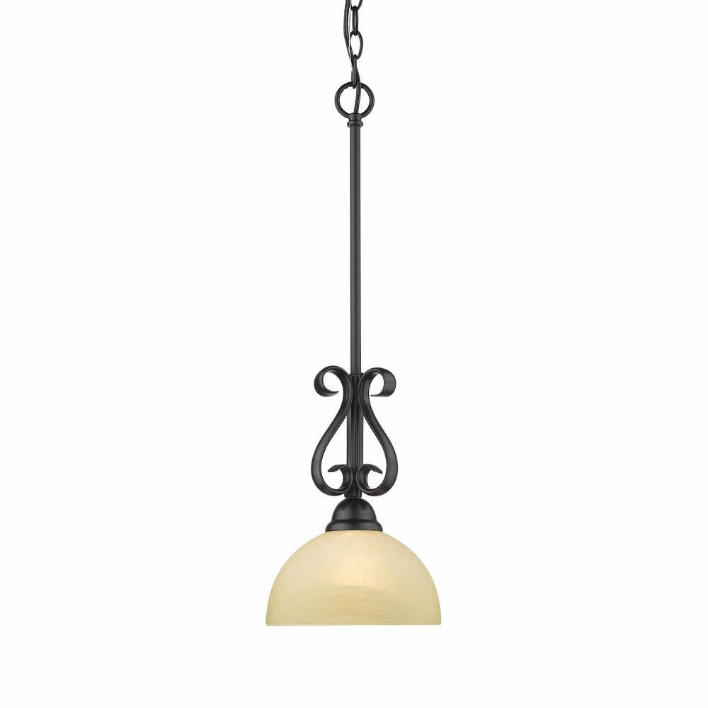 In a home where tradition and sophistication greet family and friends with every detail, Golden Lighting's Riverton collection sets the perfect tone. The smooth black will work in any space, and the classic Linen Swirl Glass casts a warm glow throughout the house. This mini pendant is an eye-catching accent that can be used alone or arrayed in a group. Ideal for the kitchen, the mini pendant provides soft ambient downlight, illuminating a kitchen bar or countertop without interfering with activity on the surface.Classically styled frame and simplified curves allows the series to be suitable for transitional to traditional stylesWide Linen Swirl Glass softly diffuses the lightCurved arms create organic flowSmooth Black FinishSophisticated wide Linen Swirl GlassEye-catching accent that can be used individually or arrayed in a groupCreates a soft glow for task lightingAll Mounting Hardware includedUL/cUL Approved.