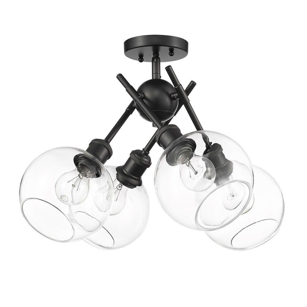 Axel is an artistic series of contemporary fixtures. Offered in two popular finishes; Matte Black and Olympic Gold with multiple glass and metal shade choices, this mid-century inspired collection features an extensive range of options. Personalize the look of the fixtures by adjusting the placement of the sputnik arms to suit your fancy. The functional, mobile arms can be positioned to spread light in all directions. This semi-flush was designed for close-to-ceiling applications.