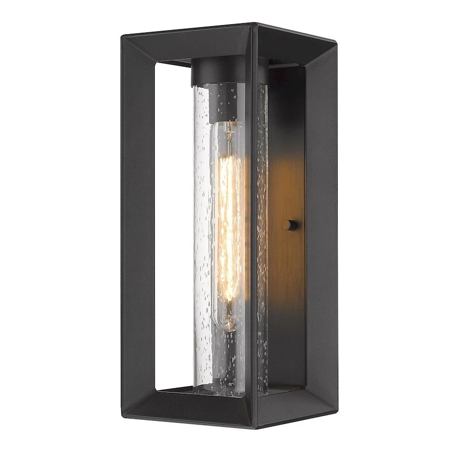 Golden Lighting Smyth 1 Light Outdoor Medium Sconce, Black/Seed - 2073-OWMNB-SD