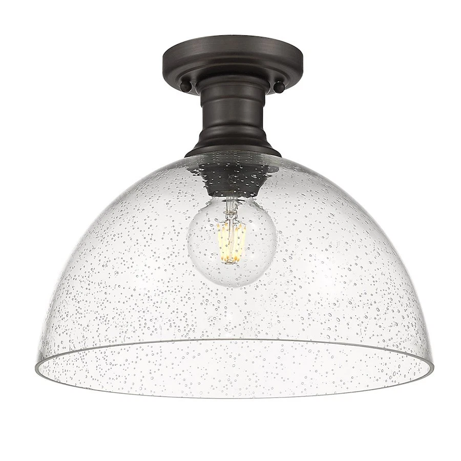 Golden Lighting Hines Semi Flush 14", Rubbed Bronze/Seeded - 3118-SF14RBZ-S D