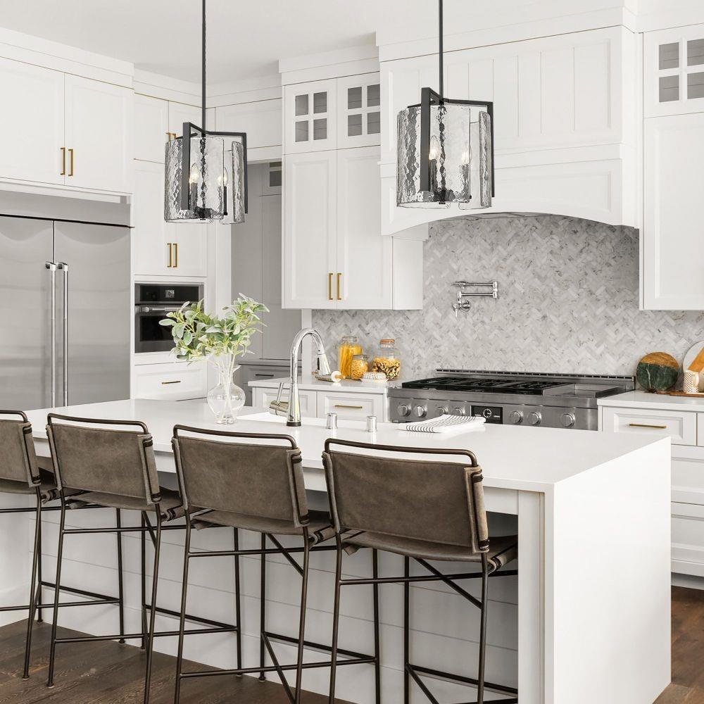 Aenon's universal style positions the series as a contemporary design perfect for transitional to modern homes. The striking Hammered Water Glass draws the eye and quickly becomes a topic of conversation and admiration. Strong masculine steel arms cradle Aenon's unique glass panels, suspending them mid-air. When lit, the Hammered Water Glass contrasts the contemporary finishes and reflect the bright light. Choose between multiple finish options.