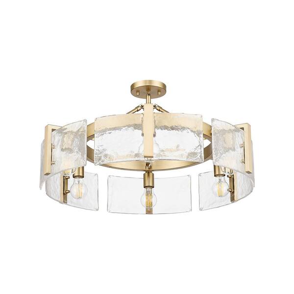 Aenon 27.75 in. 6-Light Brushed Champagne Bronze Semi-Flush Mount with Hammered Water Glass Shade