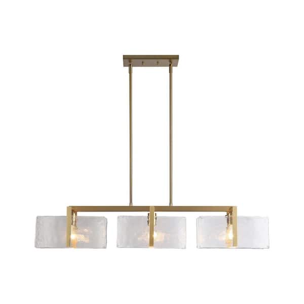 Aenon 300-Watt 3 Light Brushed Champagne Bronze Island Pendant Light with Hammered Water Glass Shade, No Bulbs Included