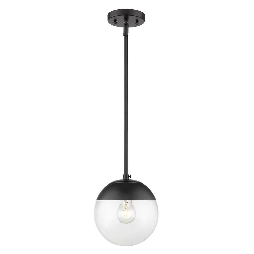 Mid-century modern design with a modern twist, these fashionable orbs are highly customizable. Available in clear or opal glass with plated chrome, pewter or brass hardware. Caps are available in a number of accent colors to further customize your look. Choose colors and finishes that complement your existing decor or design your entire room around your favorite color combination. This small, rod-hung pendant features a may be hung individually or grouped over a bar.